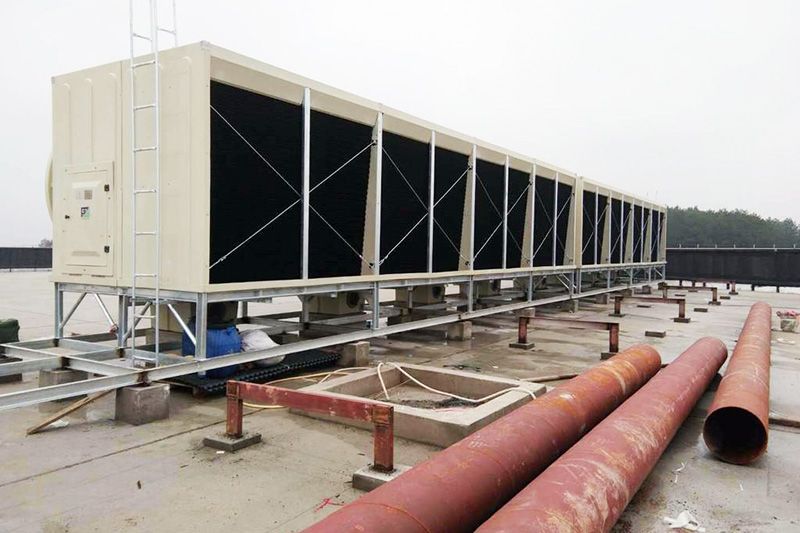橫流式閉式冷卻塔的工作原理橫流式閉式冷卻塔以鋼板為主要結(jié)構(gòu),內(nèi)部有額外的鋼結(jié)構(gòu)框架。該產(chǎn)品為雙風(fēng)扇結(jié)構(gòu),雙風(fēng)扇由皮帶減速器由同一臺(tái)電機(jī)驅(qū)動(dòng)。與橫流玻璃鋼冷卻塔相比,該產(chǎn)品最大的區(qū)別在于盤(pán)管和填料的完全
